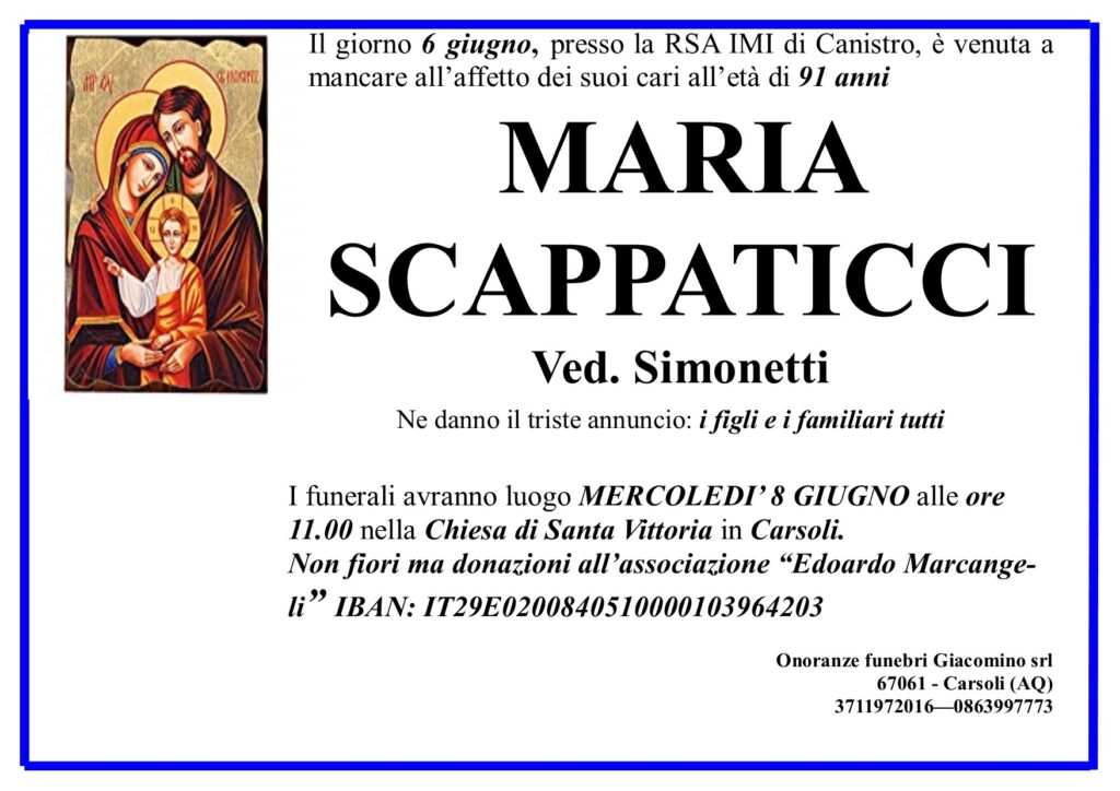 Lutto per la scomparsa di Maria Scappaticci ved. Simonetti