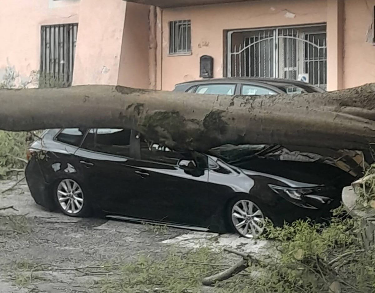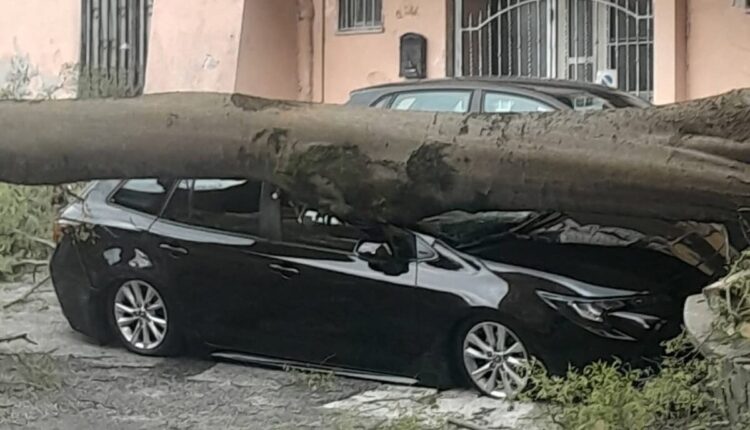 Il grande arbusto, probabilmente indebolito dal vento e dalla pioggia, si è abbattuto sulla carreggiata finendo per colpire alcune auto in sosta e provocando danni ai veicoli. La scena che si è presentata ai primi soccorritori è stata quella di rami e tronco sparsi sull’asfalto, con le vetture coinvolte visibilmente danneggiate.