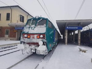Carsoli – La circolazione ferroviaria della Linea Roma Avezzano a causa delle intense nevicate, è stata interessata da ritardi anche di oltre un’ora. Questo per l’abbondanza delle precipitazioni, ma non vi è stata alcuna soppressione di treno e tutto, oltre a questi disagi di ritardo, sta funzionando normalmente. Sulla A24 e A25 spiegamento di mezzi spargisale e spazzaneve da Valle del Salto e fino alle coste. Nevicate intensissime nel teramano interno. E’ in corso accumulo mezzi pesanti con peso superiore alle 7.5 tonn. tra Manoppello e Aielli-Celano per neve e viceversa. Nella zona della capitale romana e tra Roma Est e Carsoli la circolazione è regolare.