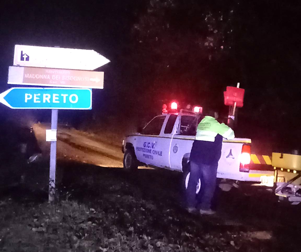 A seguito delle abbondanti piogge e dei forti venti che hanno interessato il territorio nella giornata odierna, la GCV Protezione Civile di Pereto “A. Iadeluca” ha attivato in serata una squadra di volontari per un giro di perlustrazione sul territorio comunale.