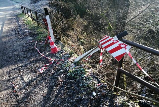 Carsoli – Sul problema relativo al ponte sul fiume Rio Sant’Antonio nella strada che conduce alla frazione di Montesabinese da via dei Marsi riceviamo e pubblichiamo integralmente la seguente nota di protesta inoltrata da un gruppo di residenti nella zona: ” “Signore e signori orrore” diceva il grande Enzo Tortora…. Purtroppo ci risiamo, qui ai piedi della Salita verso montesabinese… Non solo dopo la precedente segnalazione era stato a malapena ripristinato il primitivo sistema di segnalazione di pericolo, ma senza interventi strutturali… Ora nuovamente, da qualche giorno, la segnaletica e i ‘pochi poveri mezzi’ annessi sono di nuovo allo sfascio… Con quanto potete constatare tutti in fatto di pericolo per la circolazione su questa strada… A livello strutturale purtroppo nessun intervento è stato effettuato di ripristino integrale della barriera di protezione, se non appunto la blanda segnalazione, la quale peraltro nelle ore notturne assume un’importanza assai relativa… In caso di formazione di ghiaccio come già successo nei giorni precedenti il pericolo si moltiplica esponenzialmente”.