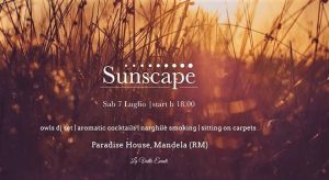 Il Sunscape inizierà alle ore 18:00 e attraverso speciali e raffinati cocktail, si aspetterà il tramonto da una splendida terrazza affacciata sul verde dei Monti Lucretili. A seguire ci sarà l’inizio della serata musicale con i dj.