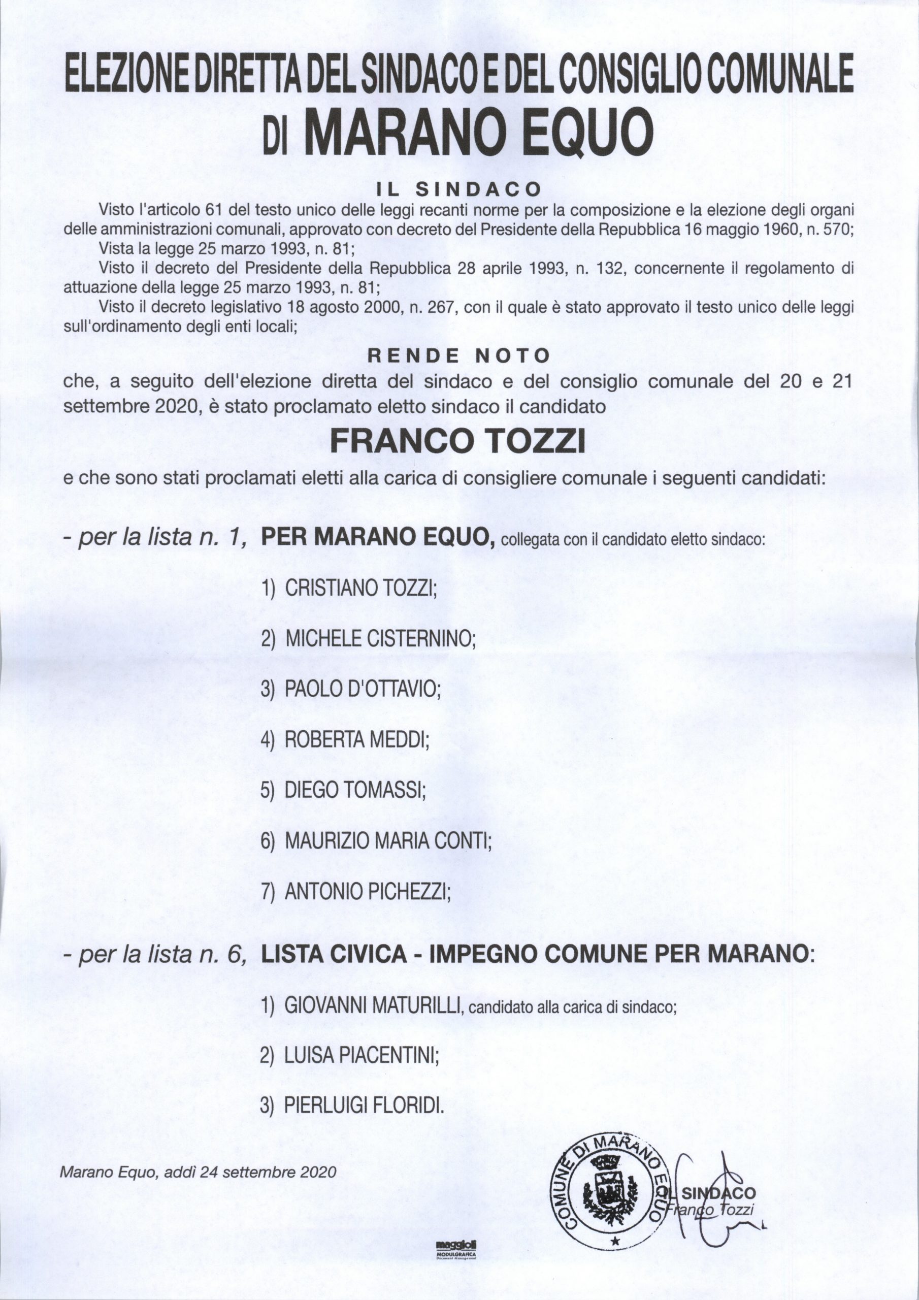 Marano Equo – E’ stata disposta la convocazione della prima riunione del consiglio comunale di Marano Equo. La civica assise si svolgerà a porte chiuse, a causa delle dimensioni particolarmente ridotte dell’immobile il 2 ottobre 2020 alle ore 17.45. Ma sarà in compenso trasmesso in diretta streaming.
