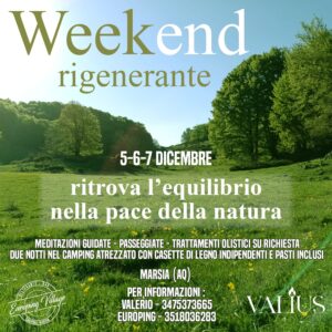 Il 5-6-7 Dicembre nell’ Europing Marsia Valerio Monteleone proporrà delle sessioni di meditazione all’aperto.