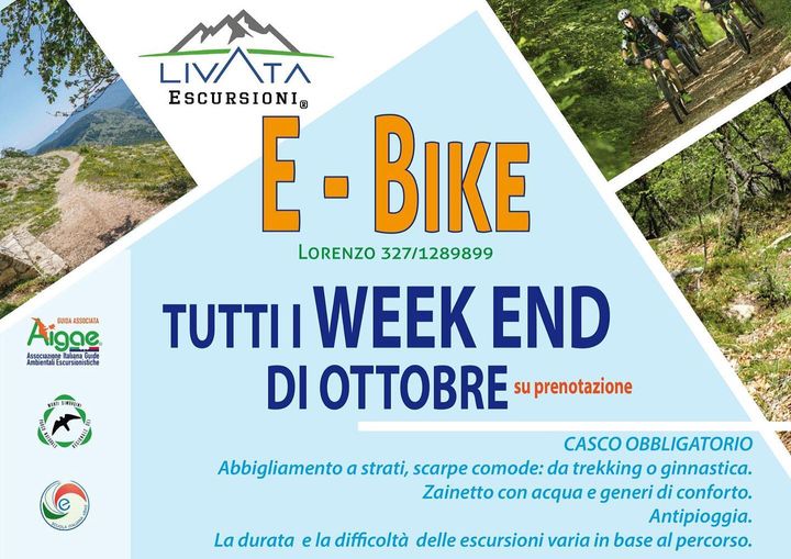 Tutti i weekend di ottobre sul Monte Livata l’avventura è una certezza: su prenotazione sarà possibile partecipare alle escursioni in e-bike e vivere le emozioni della pedalata assistita immersi nella natura incontaminata della Valle dell’Aniene. Obbligatorio l’uso del casco e consigliato un abbigliamento a strati, scarpe comode e zainetto.