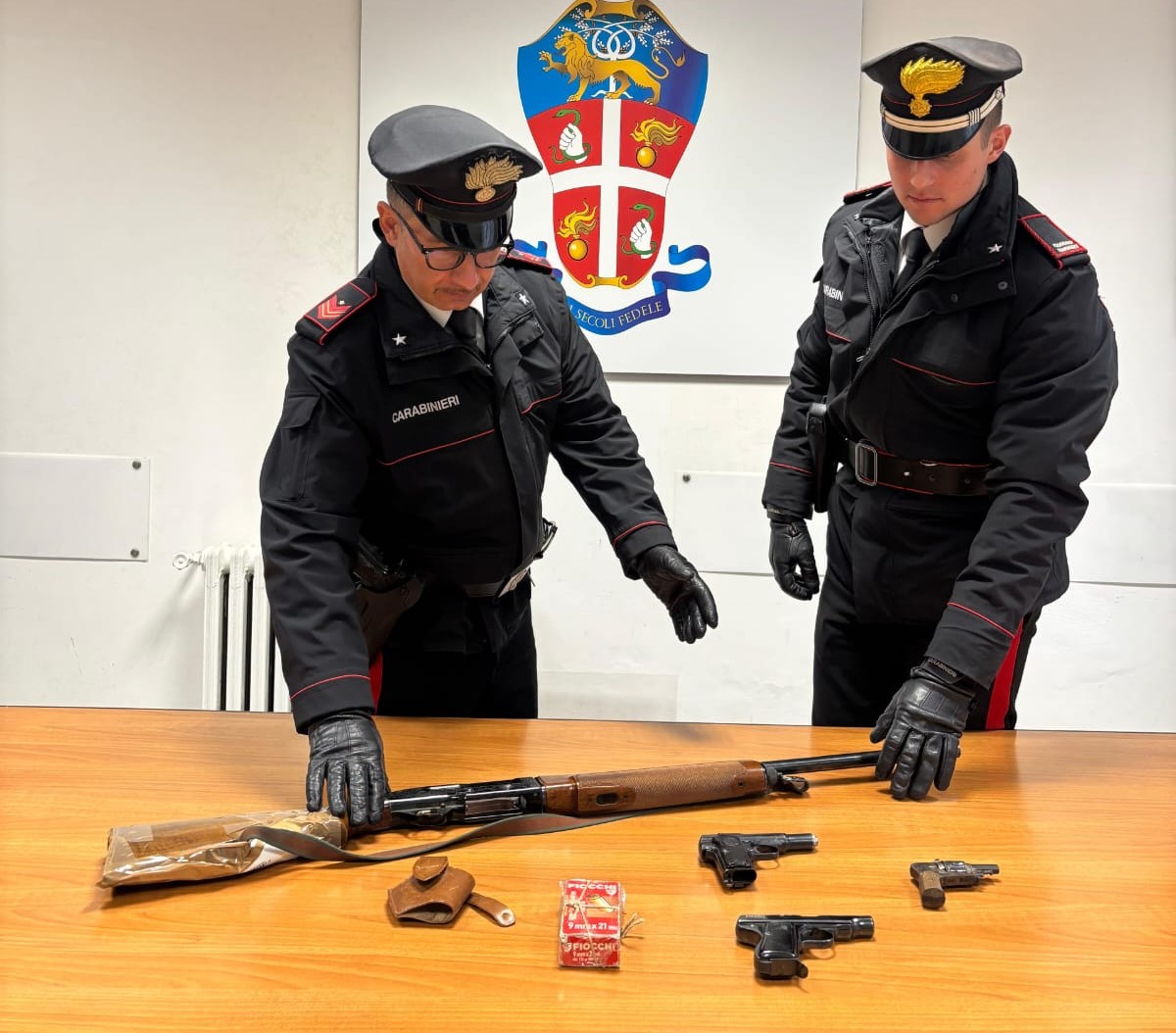 Complessivamente, i Carabinieri della Compagnia di Monterotondo hanno ritirato amministrativamente 6 fucili e 2 pistole; contestualmente, molti cittadini ci sono presentati spontaneamente presso le competenti Stazioni Carabinieri consegnando spontaneamente un totale di 4 fucili, 7 pistole e 300 munizioni.