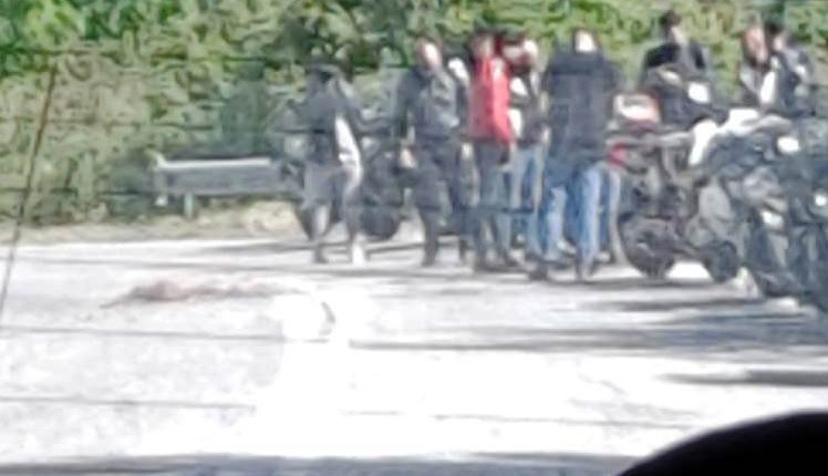 Moto fuoristrada sulla Tiburtina nei pressi di Colli di Monte Bove