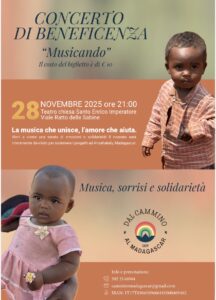Il 28 novembre alle ore 21 ci sarà un concerto di beneficenza la cui raccolta fondi sarà devoluta interamente all’associazione. L’evento si svolgerà nel Teatro chiesa Santo Enrico Imperatore, a Roma , viale Ratti delle Sabine.