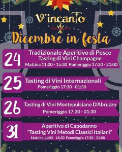 V’Incanto per le festività sarà sempre aperto, anche per il PRANZO DELLA VIGILIA DEL 24 E CENA DEL 25!