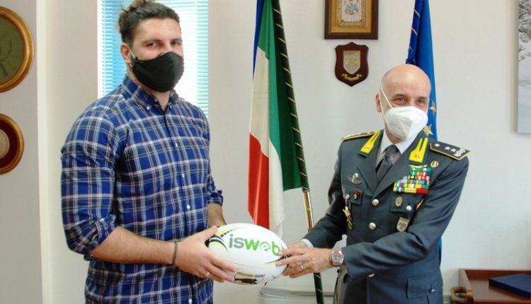 L’Aquila – Giovanbattista Venditti, abruzzese, di origine avezzanese, ex giocatore della Nazionale Italiana di rugby, del New Castle e delle Zebre, nel Campionato Celtic League (Pro 12), accompagnato dal Presidente dell’Avezzano Rugby, Alessandro Seritti, è stato ricevuto dal Comandante Regionale Abruzzo della Guardia di Finanza, Generale di Divisione Gianluigi D’Alfonso, presso la Caserma “T. Giorgi” di L’Aquila.