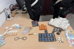 A seguito delle perquisizioni personali, veicolari e domiciliari, i militari hanno rinvenuto e sequestravano oltre 2 kg di hashish suddivisi in numerosi “panetti”, circa 33 gr di cocaina e la somma contante di 1980 euro, ritenuta provento dell’illecita attività, nonché materiale idoneo al confezionamento della sostanza stupefacente.