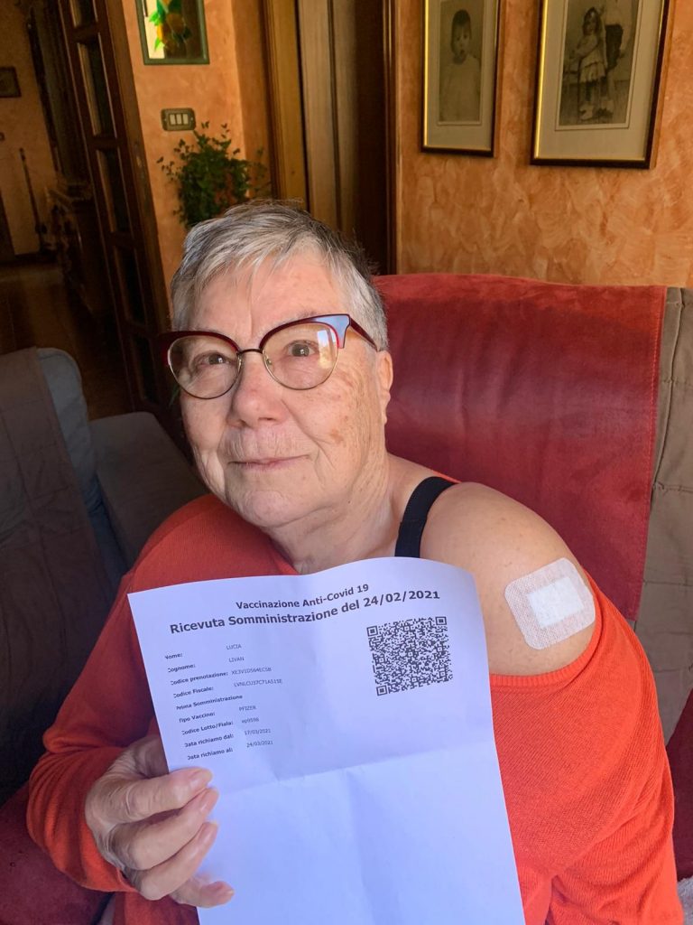« La signora Lucia Livan, classe 1937, che per il tramite del nipote Valentino, ci ha chiesto di pubblicizzare a tutti il suo gesto, si è vaccinata contro il COVID-19 senza alcun tentennamento o dubbio! “Tutti dobbiamo farlo – ha dichiarato – per il bene e la salute nostra e di chi ci è vicino! Vogliamo riprendere a vivere si o no?!”.