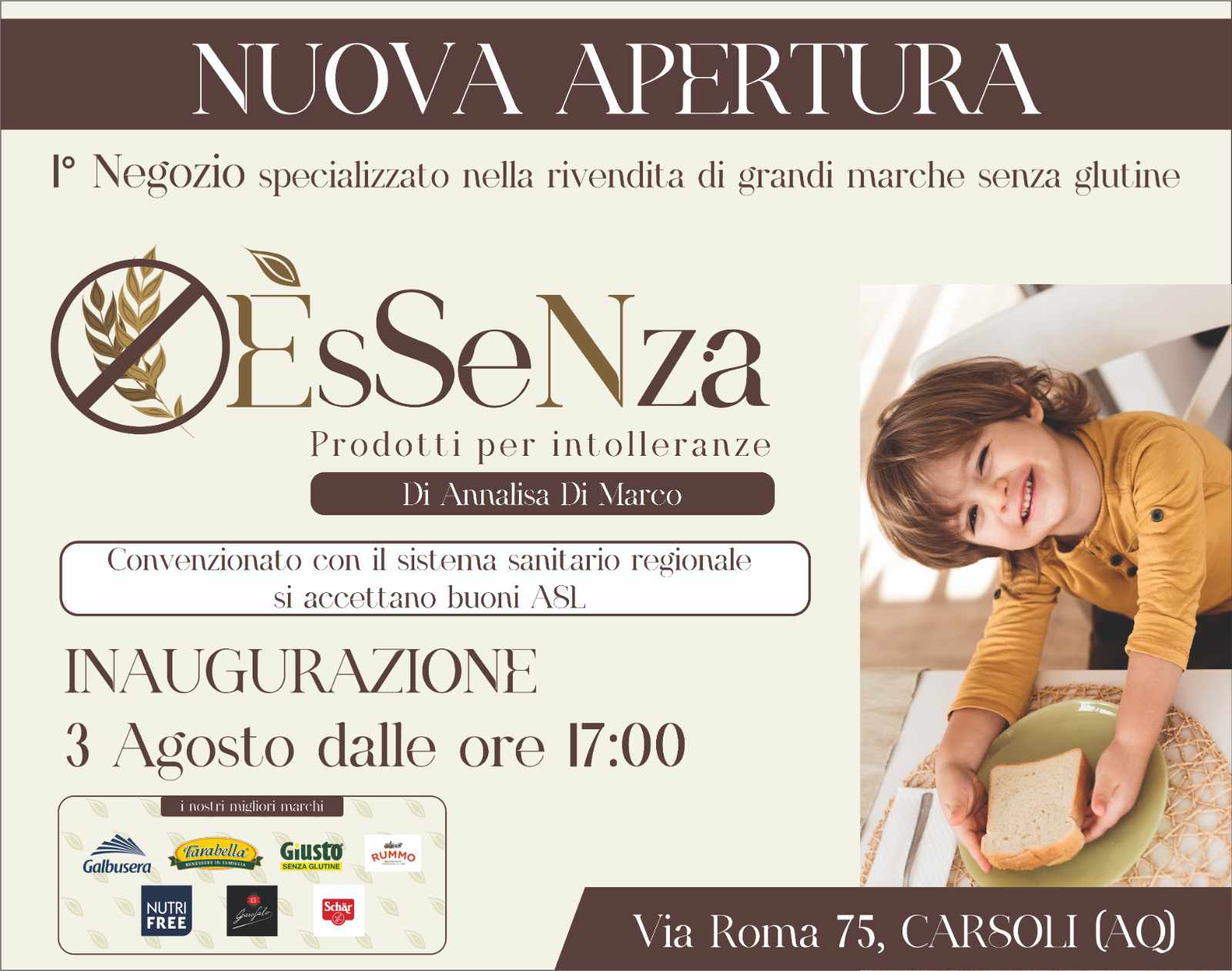 CARSOLI – Arriva il primo market per le intolleranze alimentari, inaugurazione oggi sabato 3 agosto 2024 dalle ore 17.00! Una nuova struttura commerciale al servizio del buon gusto e con amplissima scelta di prodotti delle migliori marche e selezioni. C’è spazio per tutte le esigenze. Un nuovo modo dunque di fare la spesa per chi deve utilizzare prodotti senza glutine e senza rinunciare tralaltro al buon gusto.