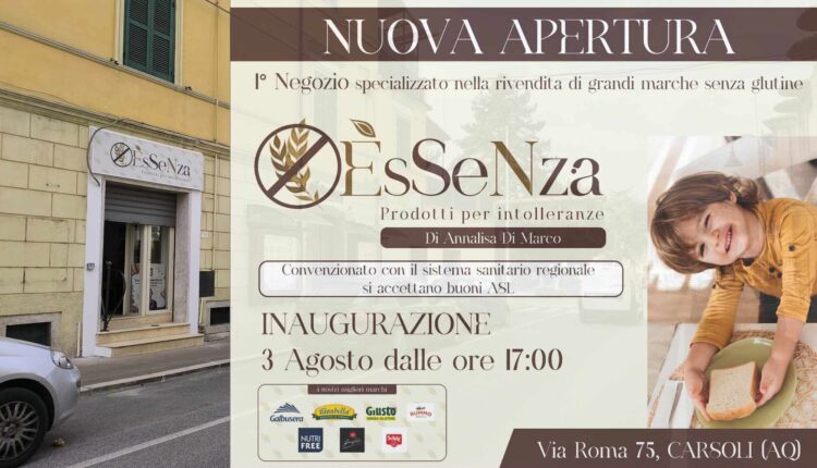 CARSOLI – Arriva il primo market per le intolleranze alimentari, inaugurazione oggi sabato 3 agosto 2024 dalle ore 17.00! Una nuova struttura commerciale al servizio del buon gusto e con amplissima scelta di prodotti delle migliori marche e selezioni. C’è spazio per tutte le esigenze. Un nuovo modo dunque di fare la spesa per chi deve utilizzare prodotti senza glutine e senza rinunciare tralaltro al buon gusto.
