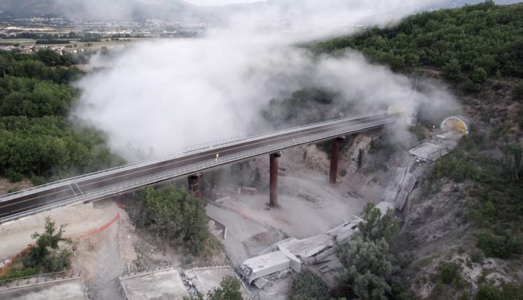 L’Aquila, 4 agosto 2021 – Procedono a ritmo serrato i lavori sulla Strada dei Parchi, tra le uscite di Tornimparte e L’Aquila Ovest. Questa mattina, alle prime luci dell’alba, è stata fatta brillare la carreggiata Est, in direzione Teramo, del Viadotto Genzano, alle porte dell’area metropolitana aquilana. Una chiusura al traffico di sole tre ore è bastata a consentire l’abbattimento controllato del Viadotto Est e a riaprire al transito in entrambe le direzioni il Viadotto Ovest, già aperto al traffico da circa un mese, completamente ricostruito e adeguato alle più recenti norme antisismiche.