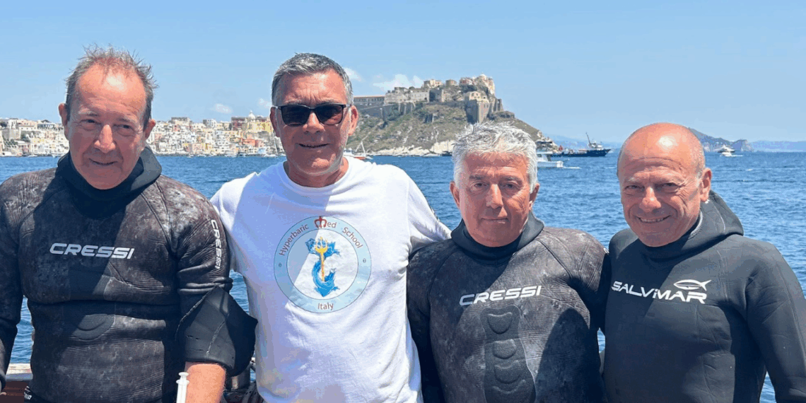 Sono stati effettuati per la prima volta prelievi emogas arteriosi in profondità con ecografia polmonare in mare aperto su un campione numeroso di volontari subacquei e apneisti. Lo scopo è stato quello di effettuare un confronto tra chi respira e chi trattiene il respiro, sul ruolo della pressione a 15 metri e a 40, sullo scambio gassoso e sulla funzionalità polmonare. Quando un subacqueo si immerge, il corpo subisce cambiamenti importanti dovuti alla pressione dell’acqua. Il sangue viene spinto verso il torace, aumentando la quantità nei polmoni. Questo può far salire la pressione nei capillari polmonari. Se la pressione diventa troppo alta, il liquido passa nei tessuti e si forma un edema.