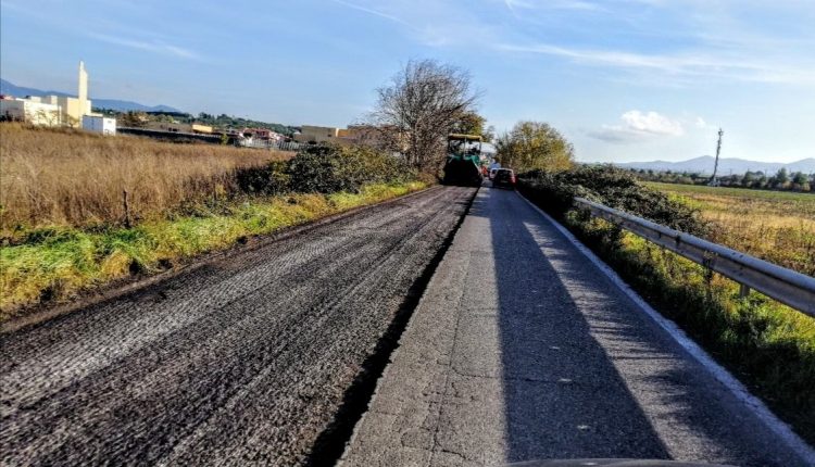 Nuovo manto stradale sulla via di Lunghezzina-Polense in direzione della A24