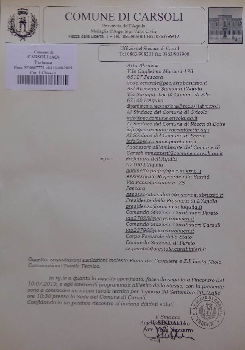 Su questa tematica interviene il Sindaco di Carsoli Velia Nazzarro che in una nota comunica di aver convocato con protocollo n. 7773 dell’11 settembre 2019 un nuovo tavolo tecnico di approfondimento su tale problema.
