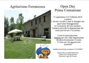 Turania – L’agriturismo Ferramosca dedica una giornata a tutte le famiglie che nella primavera prossima dovranno festeggiare la Prima Comunione dei propri bambini. L’appuntamento è per domenica 25 febbraio. In questa occasione si potranno degustare alcuni piatti dei menù che la struttura ha ideato per onorare il Sacramento della Prima Comunione.