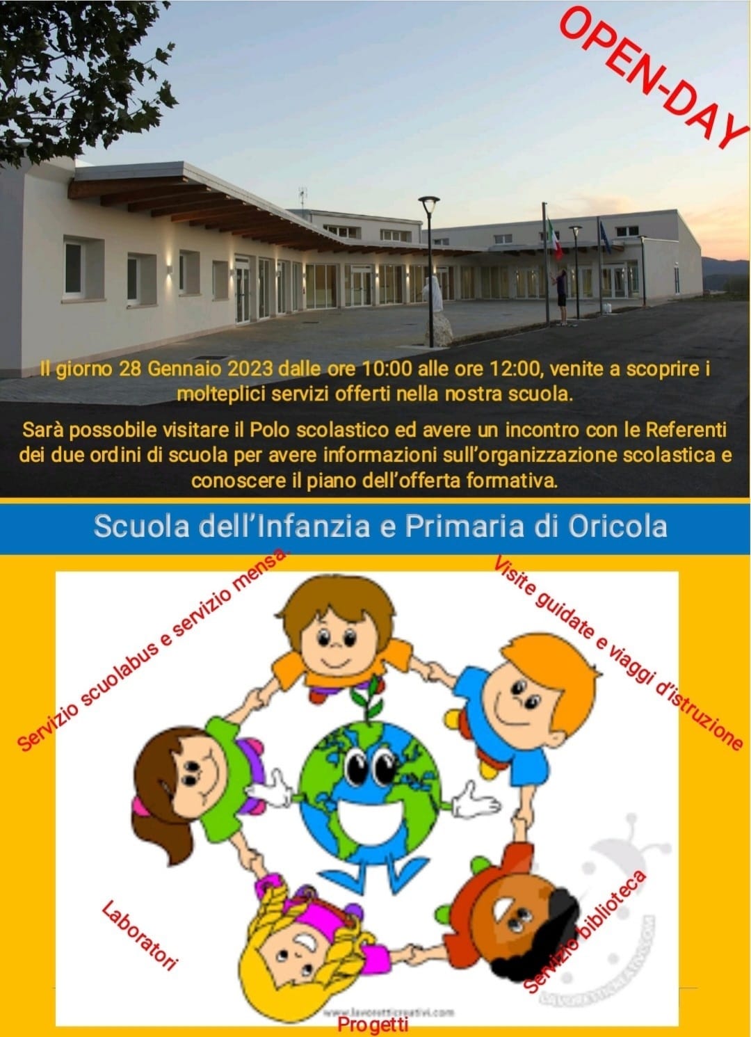 ORICOLA – La scuola dell’infanzia e primaria di Oricola nella nuova struttura apre le porte a tutti con un Open day dedicato alla esposizione dei servizi offerti, dei metodi di istruzione e delle molteplici attività che si svolgono. L’appuntamento è per Sabato 28 gennaio 2023 dalle ore 10 alle ore 12 sarà infatti possibile visitare la struttura, conoscere i piani di formazione e sull’organizzazione scolastica. Servizio scuolabus, servizio mensa, visite guidate, viaggi di istruzione, biblioteca, progetti, laboratori e molto altro.