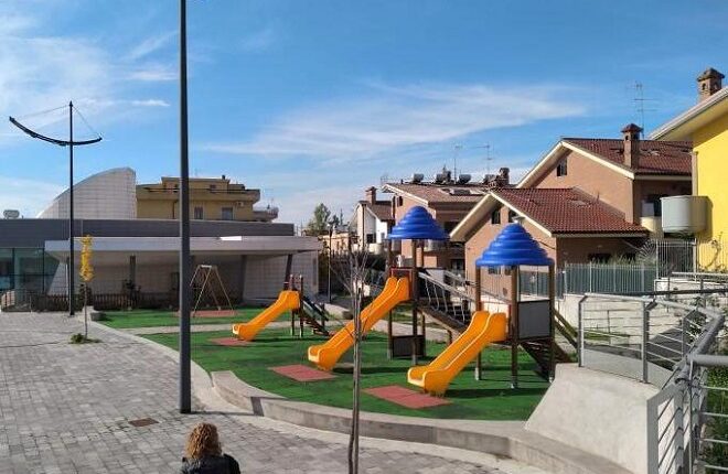 L’altro centro, costato circa un milione 900mila euro, è composto da due sale polifunzionali, uno spazio esterno con giardino e piazza pedonale, un castello di giochi con pavimentazione antitrauma e un parcheggio. L’edificio è dotato di impianto fotovoltaico e climatizzazione a pompe di calore centralizzate.
