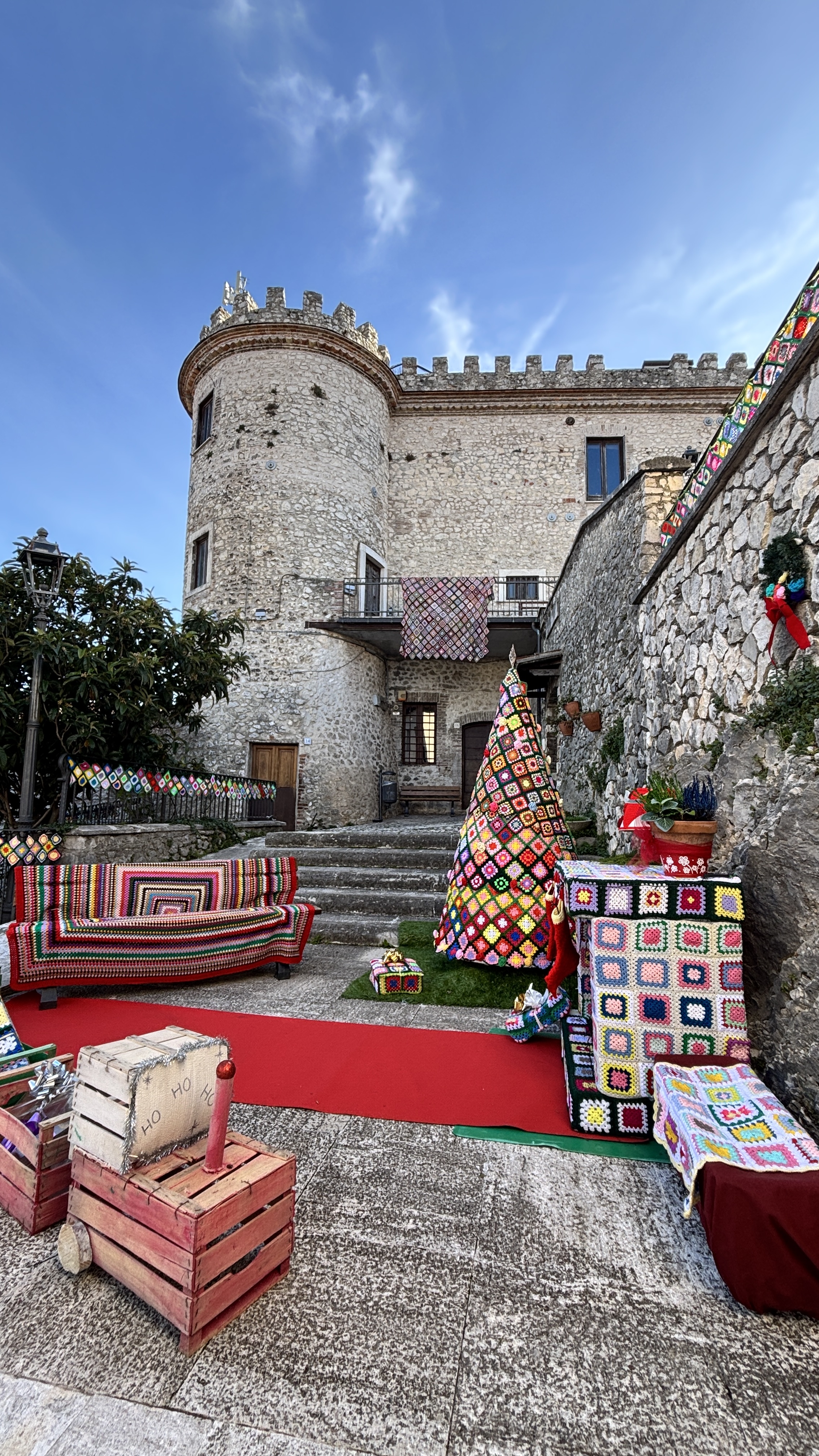 Sulla Piana del Cavaliere, baciato dal sole che ne esalta l’antica bellezza, il borgo di Oricola si è trasformato in un presepe di filati e colori, in un inno alla tradizione e alla solidarietà intergenerazionale. Quest’anno, il Santo Natale non è arrivato solo con le luci fredde dell’elettricità, ma con il calore palpabile di migliaia di mattonelle all’uncinetto, ognuna intrisa di una storia, un sorriso e un ricordo.