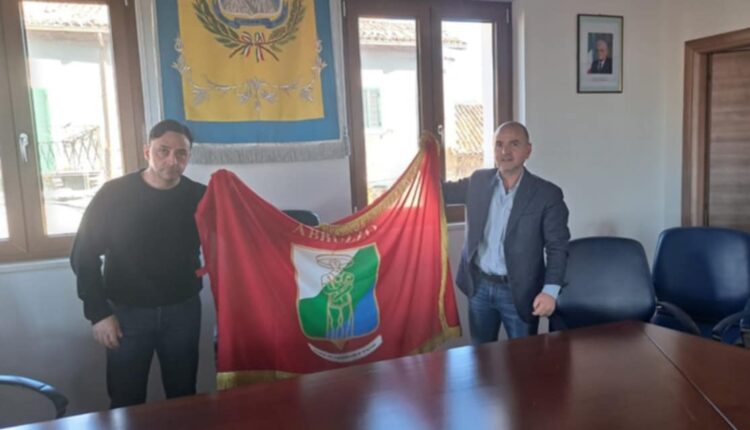 Oricola – Il consigliere regionale Gianpaolo Lugini ha consegnato ufficialmente al sindaco Antonio Paraninfi la nuova bandiera della Regione Abruzzo, il cui stemma, come noto è stato aggiornato con l’effige del Guerriero di Capestrano. FLASH