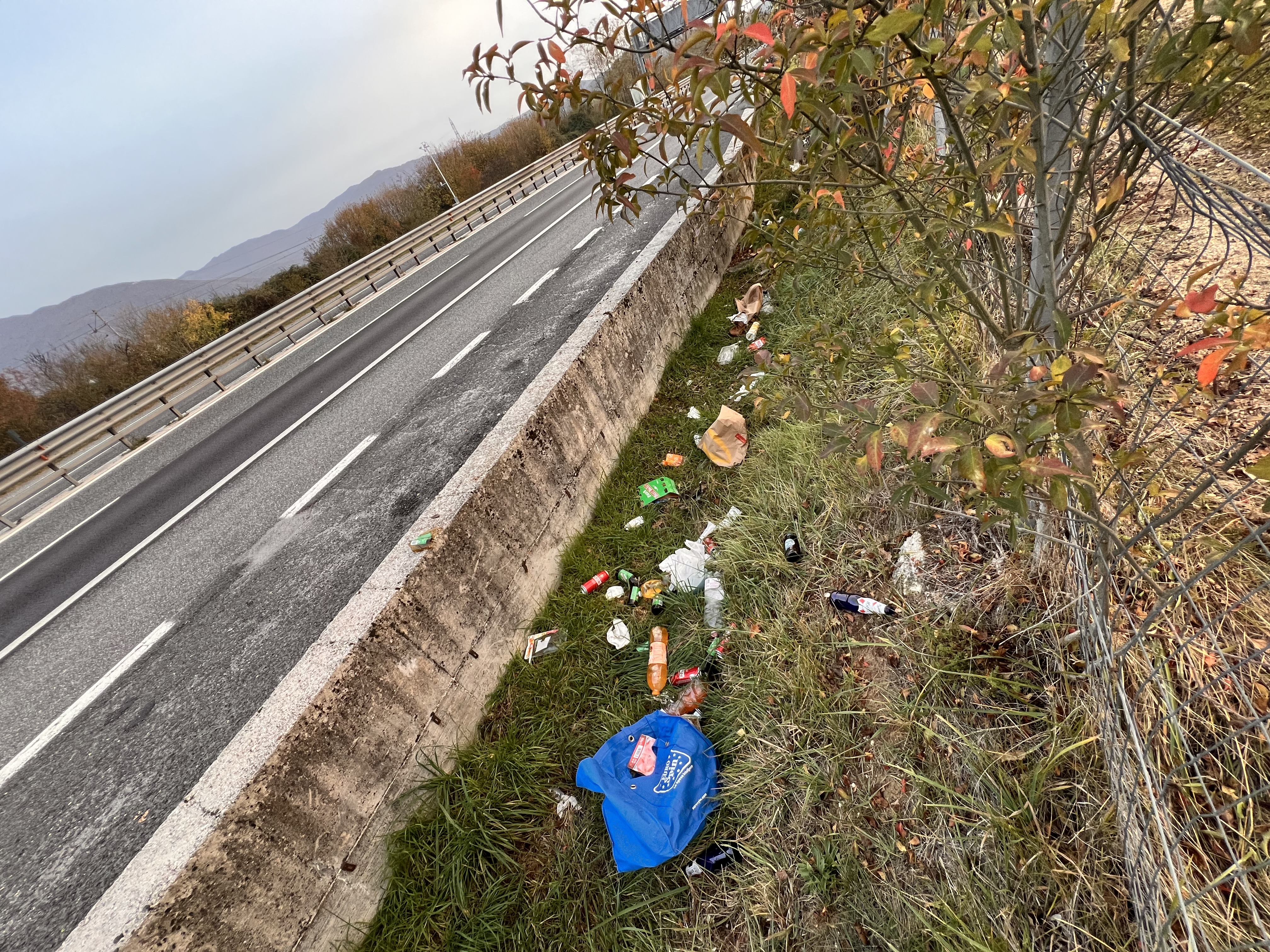 Civita di Oricola-  Una svariata quantità di rifiuti sono stati trovati su un lungo tratto dell’autostrada A24 all’altezza della zona di Civita di Oricola. Non é ben chiaro se siano stati gettati direttamente dalle auto in corsa che percorrono la A24. Spesso molti automobilisti si fermano a fare i propri bisogni, l’odore sgradevole passeggiando in quel tratto lo conferma, con molta nonchalance lungo la corsia di emergenza, alla stessa altezza dei rifiuti, nonostante poco più avanti si possa incontrare l’area di servizio Civita Nord segnalata con tempo.
