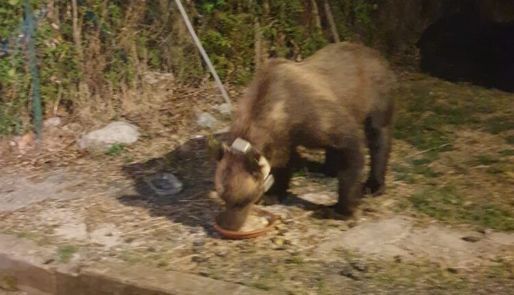 Lecce nei Marsi. Orsa Petra banchetta a Lecce nei Marsi, il Parco: sconcertati da chi le lascia ciotole di cibo e da chi appende sacchetti con rifiuti organici ai cancelli.