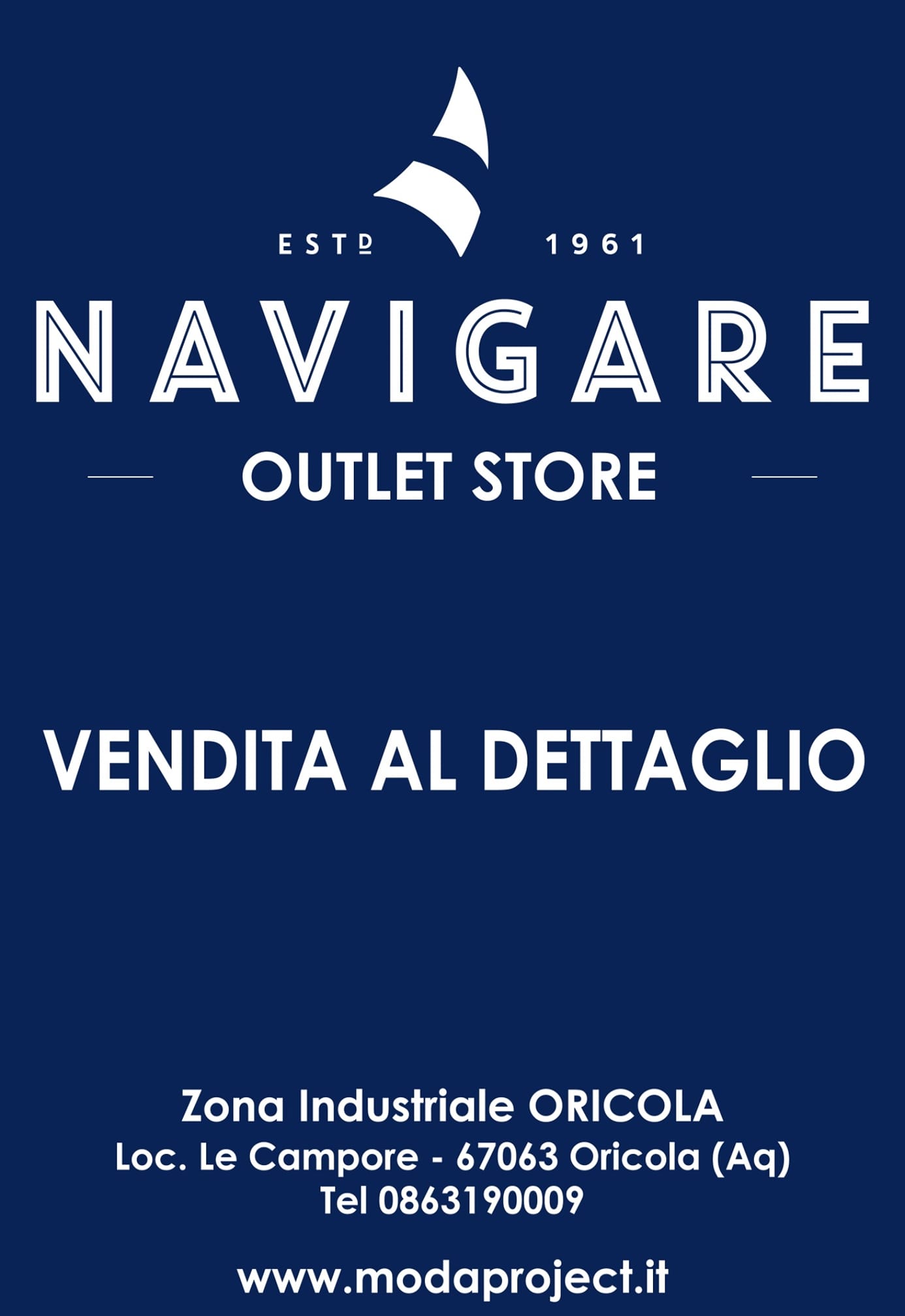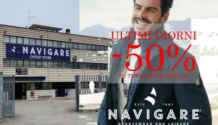 ORICOLA – Una eccezionale ed imperdibile promozione ancora per pochi giorni può essere l’occasione per fare veri affari nelle collezioni di abbigliamento uomo della nota marca “Navigare”. Protagonista il noto outlet situato a poca distanza dal casello autostradale della A24, che estende la promo sconto al 50% ancora per pochi giorni. Occasione unica per farsi un regalo, per fare regali, e per rinnovare l’outfit con l’ampia scelta di capi di pregio: per tutti i gusti, per tutte le età.  Vale dunque l’occasione di visitare lo show room, amplissimo dove si può trovare di tutto: abiti, maglie, giacconi invernali, giacche, cappotti, e tutto ciò che si può desiderare. E l’owner Claudio Barbaria garantisce: massima soddisfazione per gli acquisti!