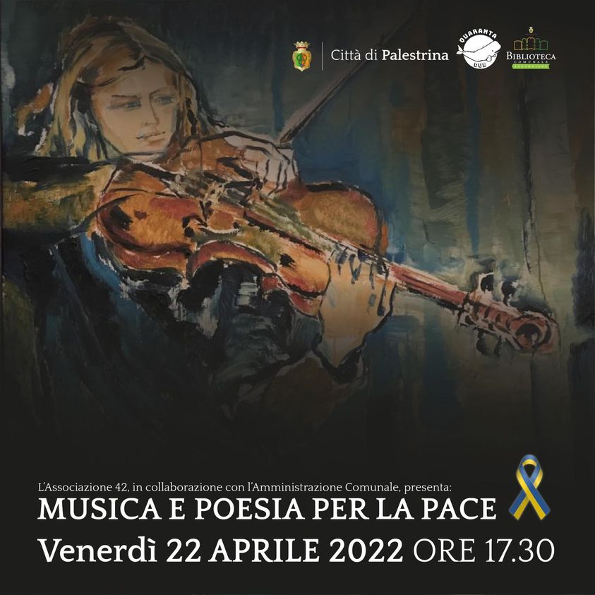 Palestrina – Venerdì 22 aprile  alle ore 17.30, presso la Biblioteca Comunale Fantoniana di Palestrina, si terrà l’evento “Musica e Poesia per la Pace”, in collaborazione con Associazione QuarantaDue.