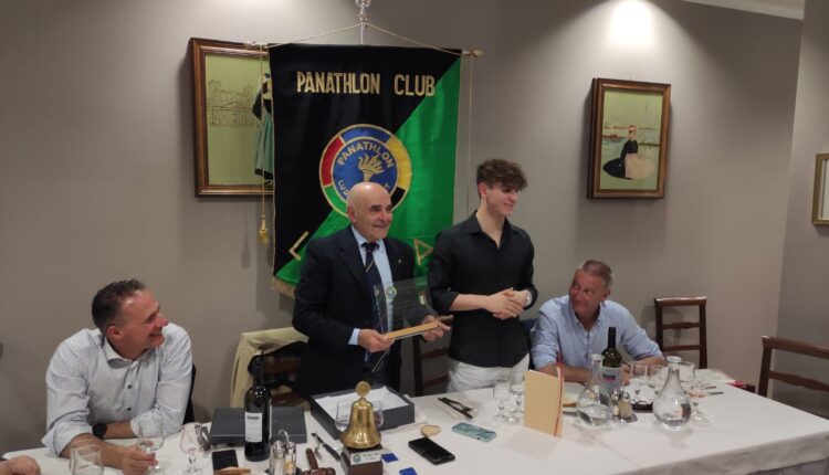 Lorenzo Salvati, nel ricevere la targa consegnatagli dal Presidente del Panathlon , ha
