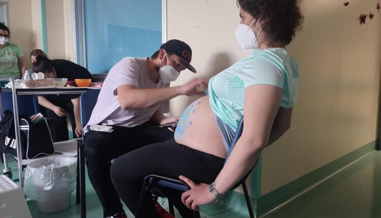 FROSINONE – Patch printing sui pancioni di donne incinte presso il reparto di Ostetricia a Cassino. “Per valorizzare il corpo, le madri, la nascita e festeggiare la vita. Mamme e sanità unite per affrontare il parto assieme al personale sanitario.” la  Asl ha organizzato una iniziativa che ha reso i pancioni più colorati e celebrativi. Tecnici ed artisti si sono cimentati nella realizzazione di disegni ed opere artistiche con colori adatti alla pelle ma perfettamente lavabili su modelle in procinto di partorire.