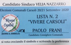 Elezione diretta del Sindaco e del Consiglio Comunale di Carsoli 20 e 21 Settembre 2020