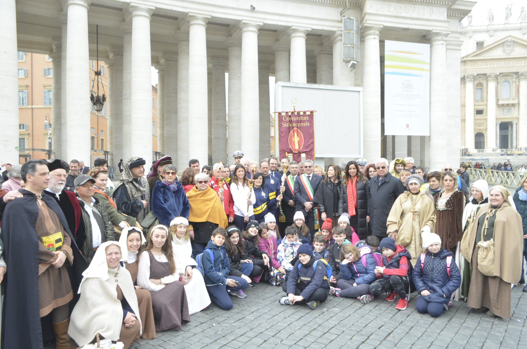 Dopo un breve momento di saluto con i Sindaci di Subiaco, Francesco Pelliccia, Norcia, Nicola Alemanno e Cassino, Enzo Salera, Papa Francesco ha benedetto la Fiaccola, sorretta dai Marciatori Simbruini, dal Norcia Run e dal Cus. Ad accompagnare la delegazione anche i gonfaloni cittadini e le rispettive Polizie Locali, i membri dei cortei storici, alcuni alunni dell’Istituto Comprensivo di Subiaco, fedeli del Patrocinio San Benedetto e del Convento di San Francesco, oltre ad una delegazione del Centro Anziani di Subiaco.
