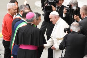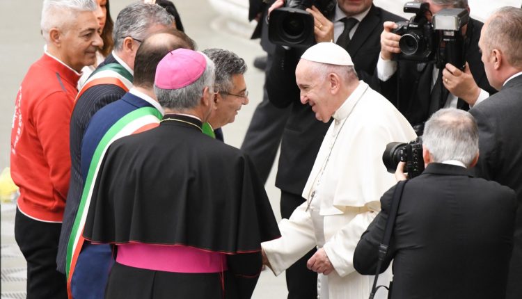I rappresentanti delle Comunità civili e religiose di Subiaco, Norcia e Cassino, insieme ai tedofori dei gruppi sportivi, hanno incontrato Papa Francesco per la solenne benedizione della Fiaccola “Pro Pace et Europa Una”, che proprio oggi viene presentata in una nuova forma e consegnata formalmente alle tre Città benedettine.