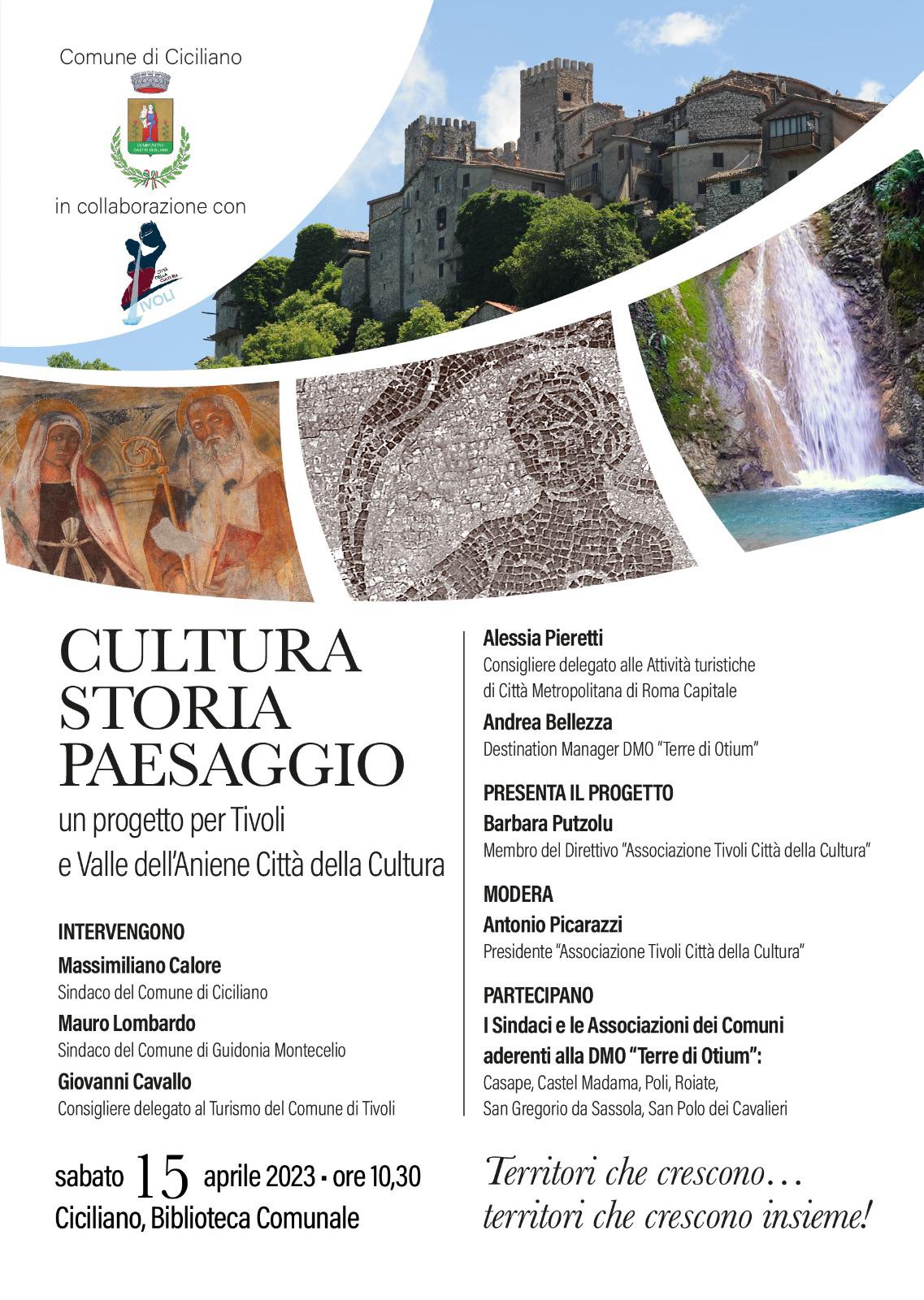 CICILIANO -«Il Comune di Ciciliano, ha organizzato per il giorno 15 aprile un evento pubblico avente al centro il tema di Tivoli Capitale della Cultura e il nostro specifico progetto.