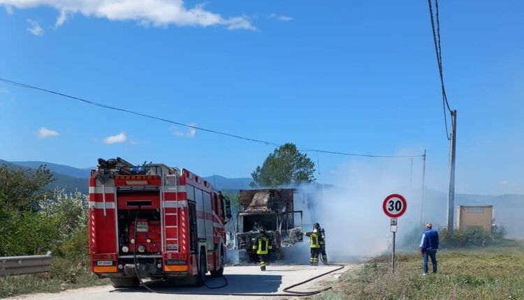 Avezzano. Furgone a fuoco nel Fucino. Le fiamme sono divampate poco fa lungo strada 39.