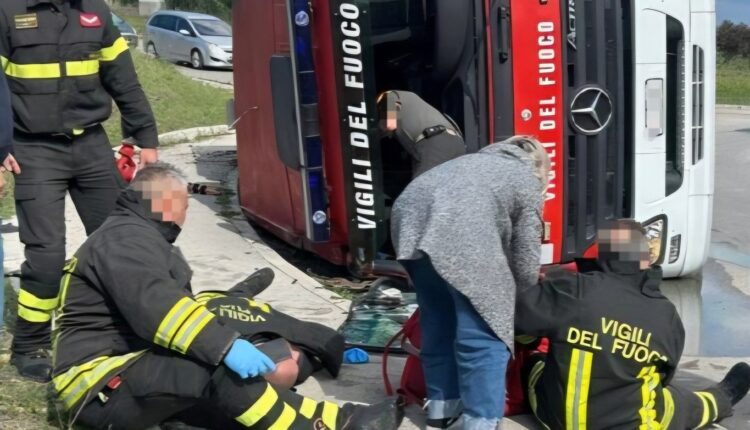 CEPAGATTI PE – Momenti di tensione nella tarda mattinata di venerdì 3 ottobre a Villanova di Cepagatti, dove un mezzo dei Vigili del Fuoco si è ribaltato improvvisamente mentre era in corsa per un’operazione di soccorso urgente. A bordo c’erano cinque pompieri: tutti sono rimasti feriti, fortunatamente non in pericolo di vita, ma uno di loro versa in condizioni più serie.