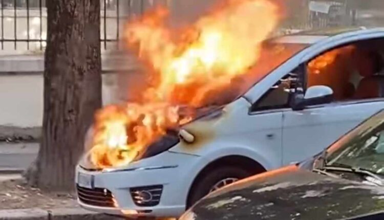 Paura ad Avezzano, auto prende improvvisamente fuoco in pieno centro