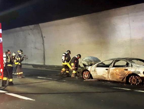 Il conducente dell’auto ha fatto in tempo a lasciare il veicolo mettendosi in salvo, ma la paura per gli automobilisti in transito nella galleria in quel momento è stata molta.