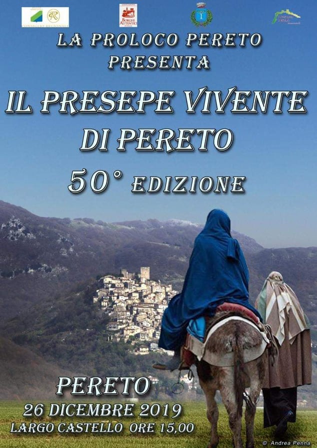 Pereto – C’è grande attesa nella Piana del Cavaliere per la cinquantesima edizione del Presepe Vivente di Pereto. Un cult che caratterizza il bellissimo borgo autentico. L’appuntamento per la rievocazione che quest’anno è prevista in modalità ancor più suggestiva è per il pomeriggio di Santo Stefano il 26 dicembre 2019 alle ore 15.00.