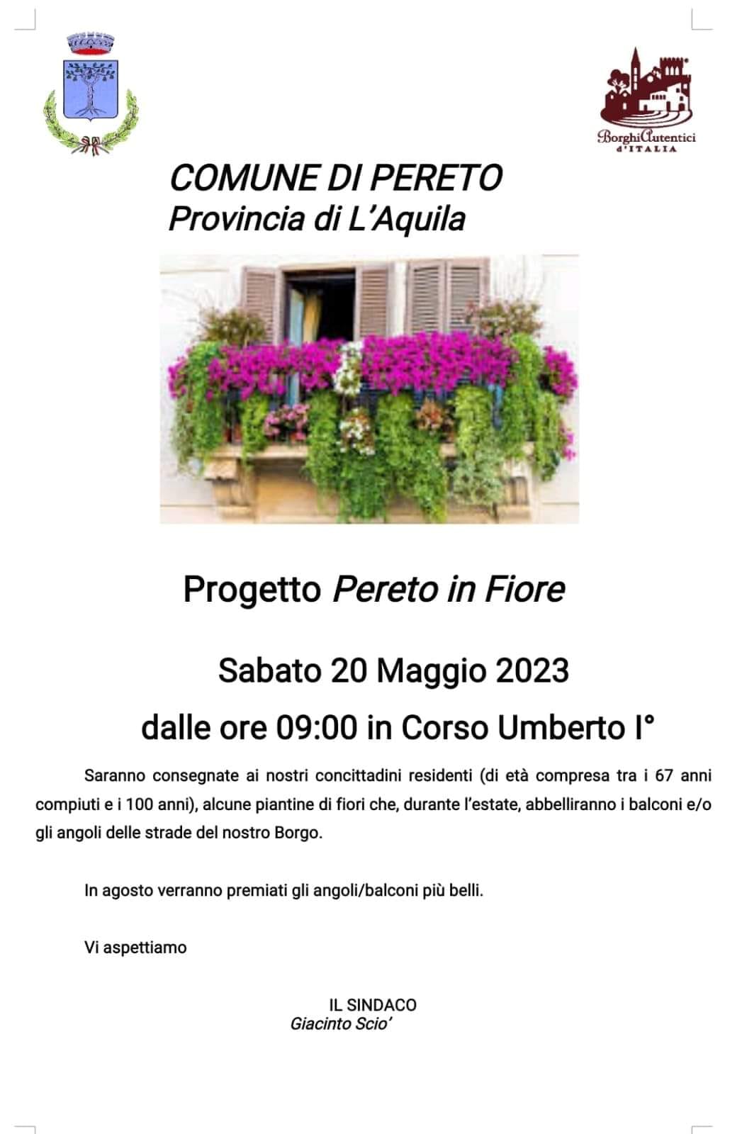 PERETO – Il comune di Pereto ha lanciato una interessante iniziativa che partirà il prossimo 20 maggio 2023. Dal mattino appuntamento in piazza Umberto I°: il comune consegnerà ai cittadini piantine di fiori ornamentali che potranno essere utilizzati in finestre, balconi e spazi vari con l’obiettivo di rendere ancora più bello il borgo durante l’estate.
