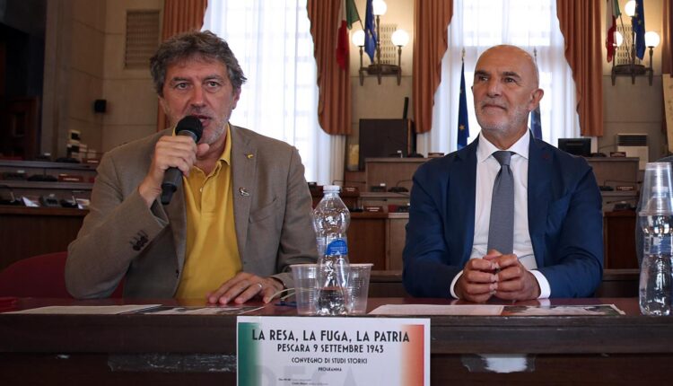 PESCARA – “La resa, la fuga, la Patria -Pescara 9 settembre 1943” è il titolo del convegno di studi storici, organizzato e coordinato dal giornalista e storico, Marco Patricelli, in programma sabato 9 settembre nella sala Gabriele d’Annunzio all’Aurum di Pescara. Alla presentazione dell’evento, al quale prenderà parte, tra gli altri, anche il ministro della cultura, Gennaro Sangiuliano, è intervenuto il presidente della Giunta regionale, Marco Marsilio.