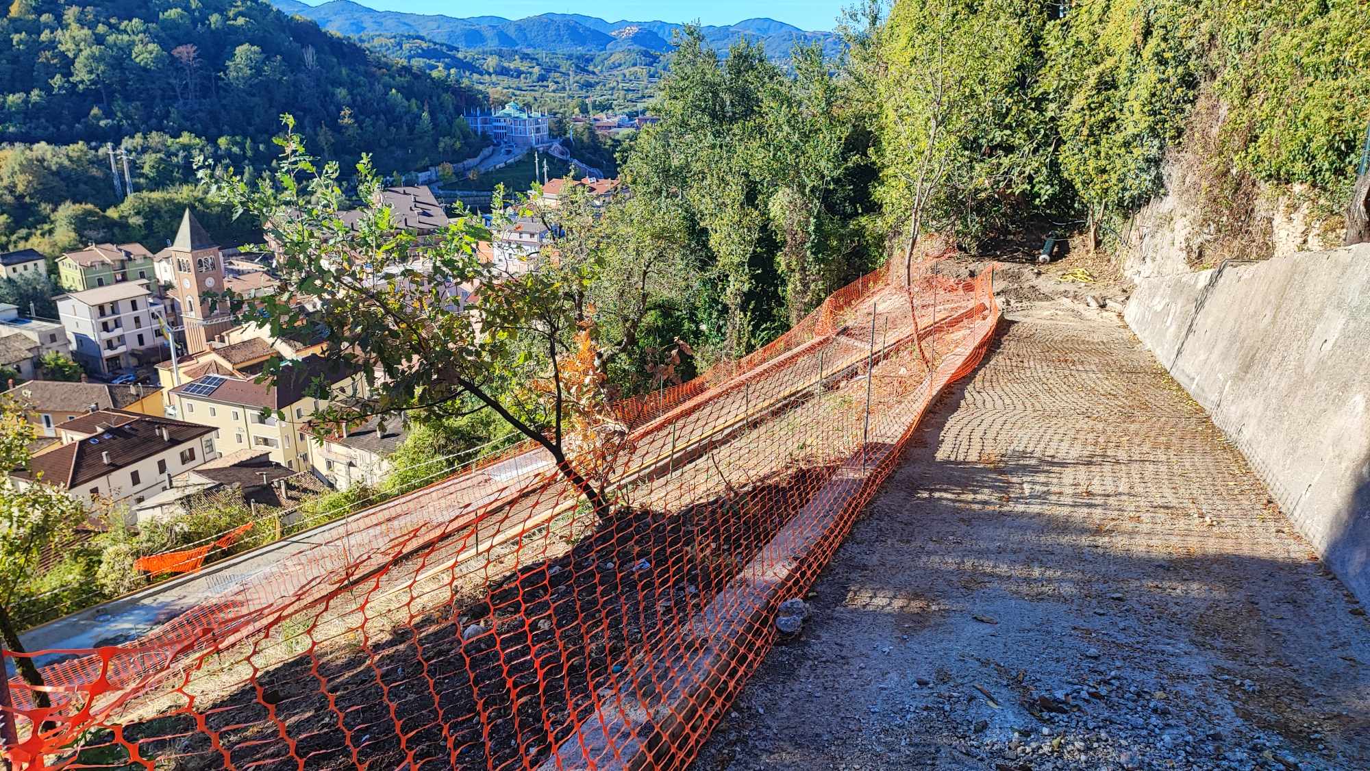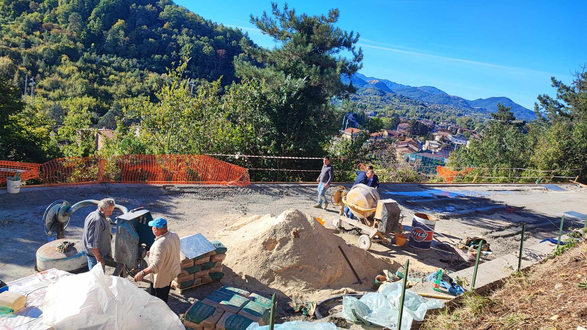 I lavori stanno proseguendo, sono state demolite le vecchie pavimentazioni, rimossa la vegetazione che rendeva quasi impraticabile l’area, oltre ad una bonifica generale. Nella strada di accesso al castello inoltre è prevista una regimentazione delle acque in maniera tale che l’asfalto (anch’esso in rifacimento) resti integro senza le acque di scolo di pendenza, e quindi con consistente attenuazione del rischio ghiaccio.