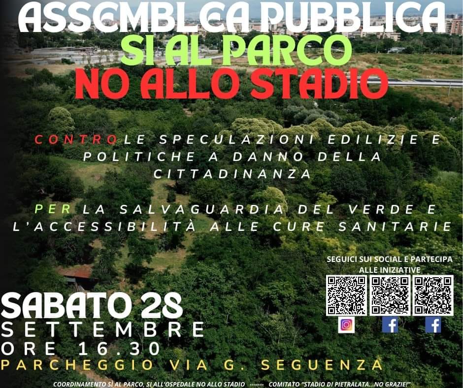 ROMA – Chiamata a raccolta per il si al parco e no allo stadio di Pietralata. L’appuntamento pubblico è per sabato 28 settembre 2024 alle ore 16.30 in via Giuseppe Seguenza.