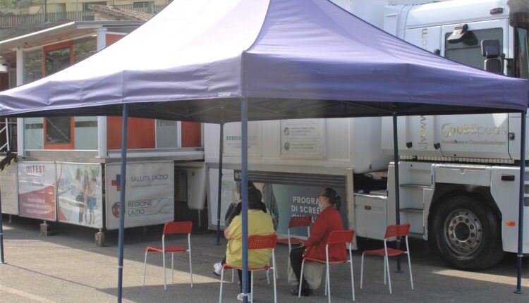 POLI – L’onorevole Rodolfo Lena, Presidente della Commissione sanità della Regione Lazio, accompagnato da Manuel Magliocchetti, consigliere delegato di Anci Lazio, insieme al sindaco Federico Mariani e alla vicesindaca Barbara Cascioli, hanno visitato presso Piazzale Orziere, a Poli, il poliambulatorio mobile dove sta proseguendo la campagna di screening oncologici per effettuare la mammografia, fare direttamente sul posto il Pap-test, l’Hpv-test e la consegna del kit per lo screening del colon retto.