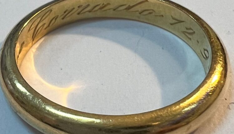 La fede in questione, che al suo interno ha inciso “Corrado 12.9.1967”, si ritiene possa appartenere ad una donna.