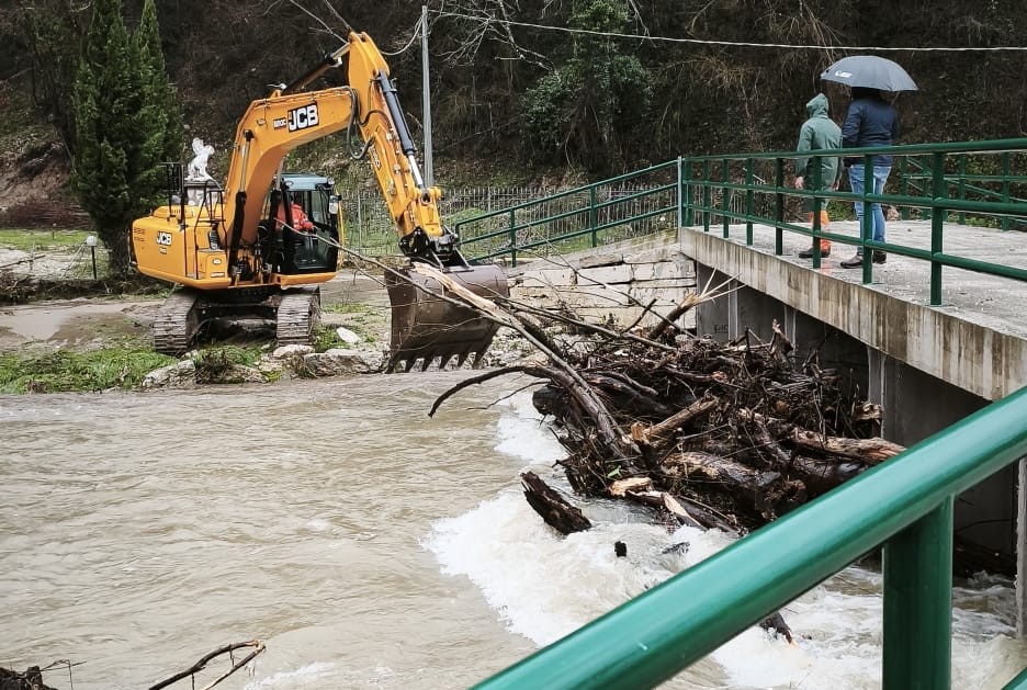 VICOVARO – Piogge incessanti, smottamenti frane, il territorio di Vicovaro ricadente nella zona di allerta rossa E Aniene è stato flagellato dall’emergenza alluvionale. In particolare sorvegliato speciale era il ponte Fiumicilli, che a causa dei detriti portati dalla piena ha rischiato di tracimare con conseguenze di danni e problemi elevatissimi. Sul posto le squadre della Dsa Appalti di Carsoli che hanno provveduto con idonei mezzi a rimuovere gli ostacoli seguendo un criterio di sicurezza, cosicchè il deflusso delle acque ha potuto proseguire. Interventi sono stati realizzati anche sull’alveo del fiume, con rimozione dei detriti giacenti nel letto, consentendo così un deflusso evitando straripamenti.