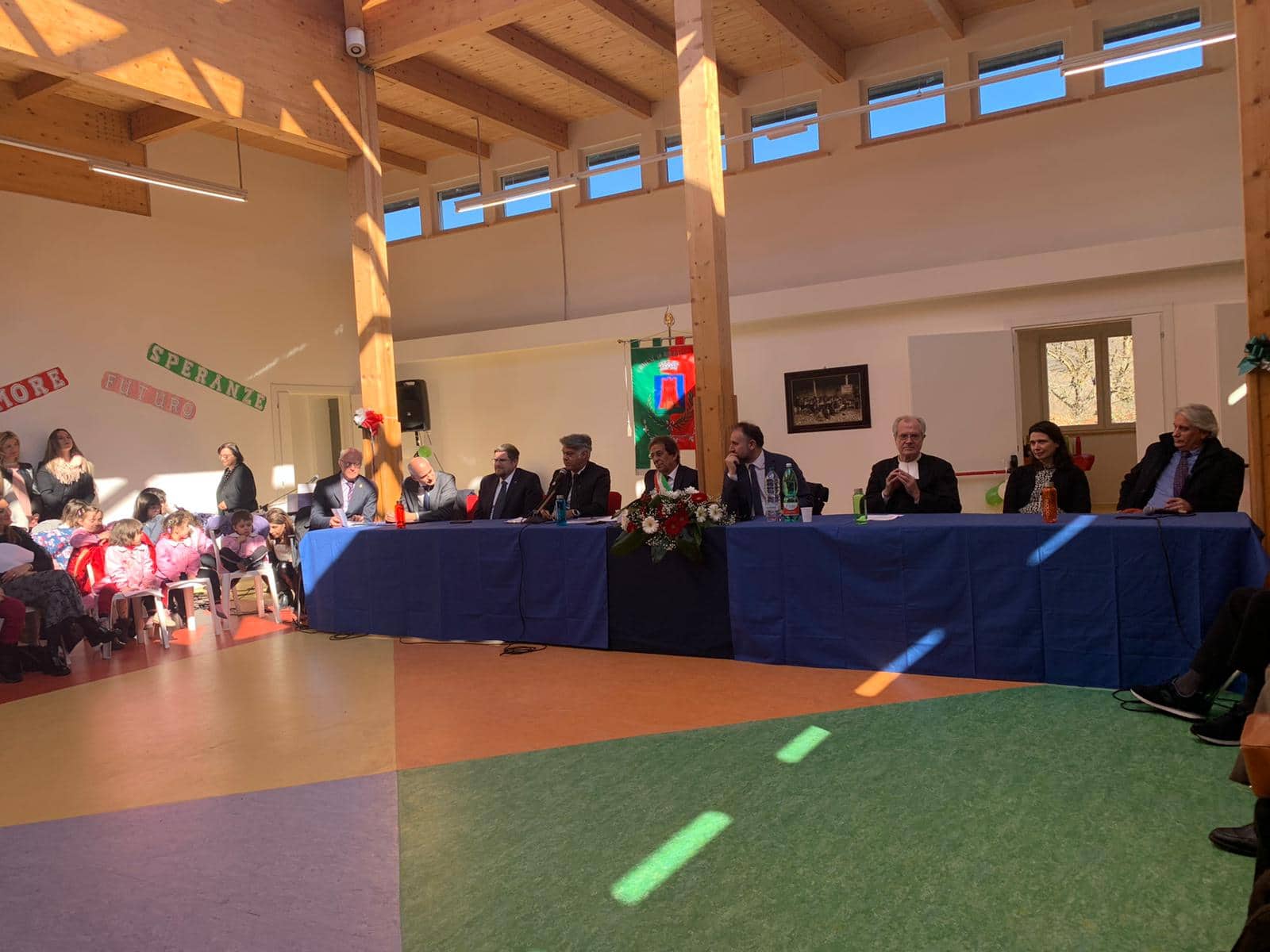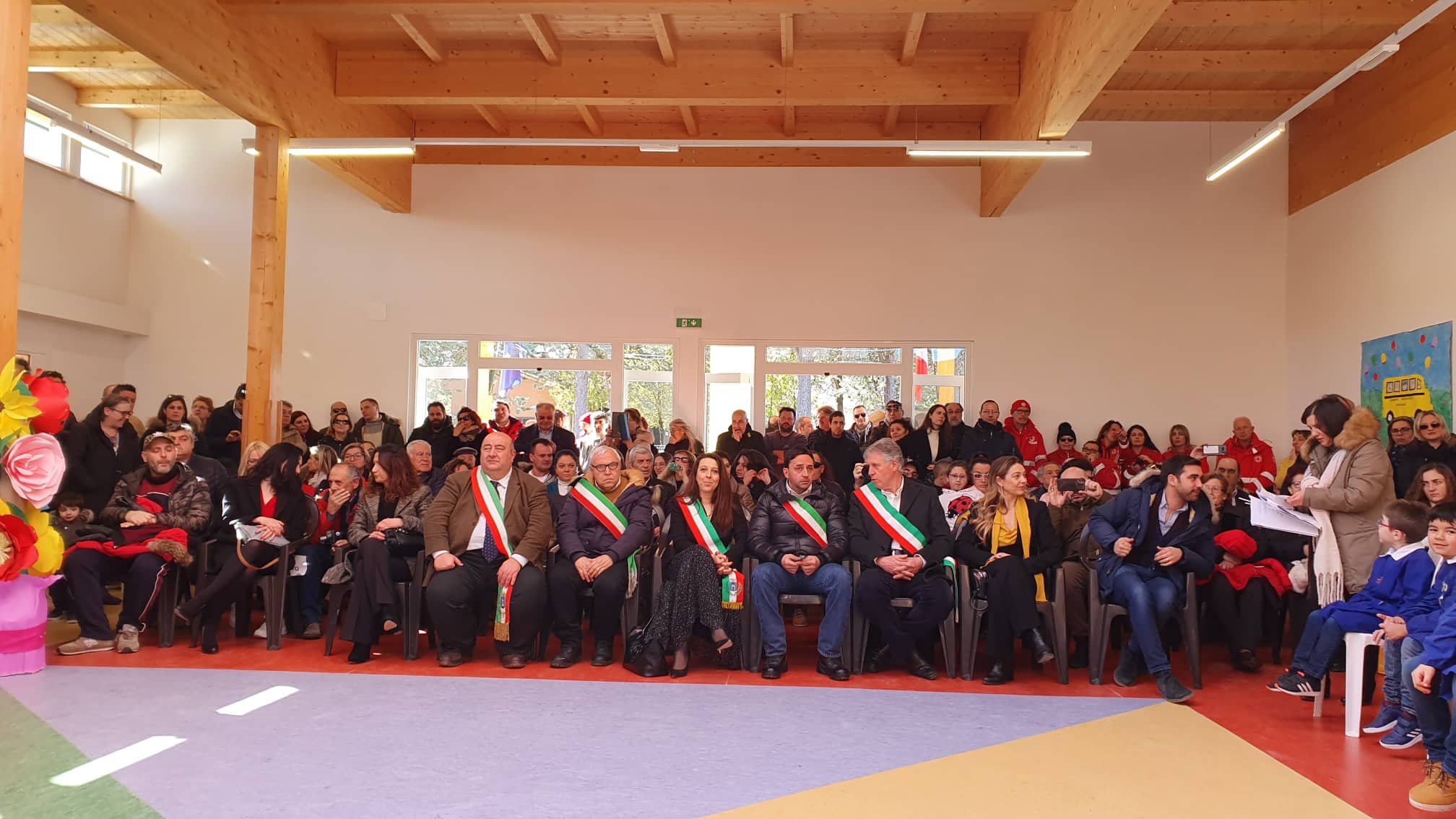 Sotto un sole splendente la nuova struttura situata nella località Casaletto, nella parte piana del bellissimo borgo la nuova scuola è diventata realtà. La cerimonia ufficiale si è svolta in un clima di grande entusiasmo generale. Schierati tutti gli studenti con le loro insegnanti e la dirigente scolastica prof.ssa Florenza Marano. Dopo l’inno di Mameli, i docenti hanno introdotto i bambini nella lettura di odi, poesie e filastrocche con gli applausi del numeroso pubblico presente nell’agorà della scuola stessa.